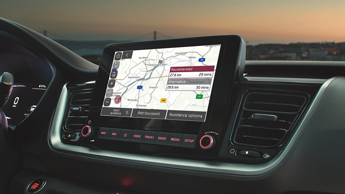 • Kia-Kartennavigation mit Bildschirmdiagonale 31,2 cm (12,3 Zoll), inkl. 2 "Over-the-Air"-Updates² und 7-Jahre-Kia-Navigationskarten-Update